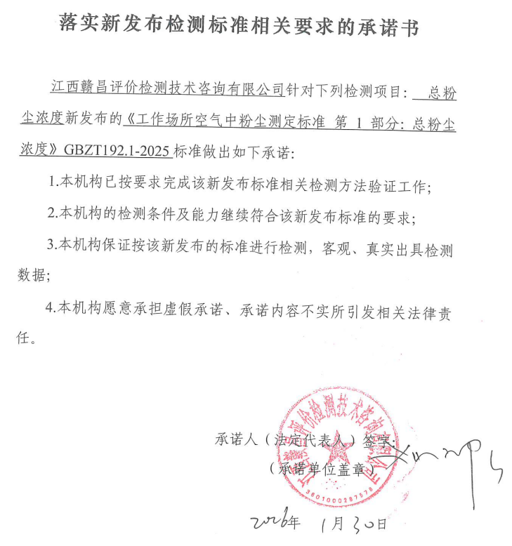 关于落实新发布检测标准(总粉尘浓度)相关要求承诺书