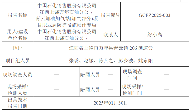 下一篇:中国石化销售股份有限公司 江西上饶横峰石油分公司 司铺加油站改、扩建项目 职业病防护设施设计专篇
