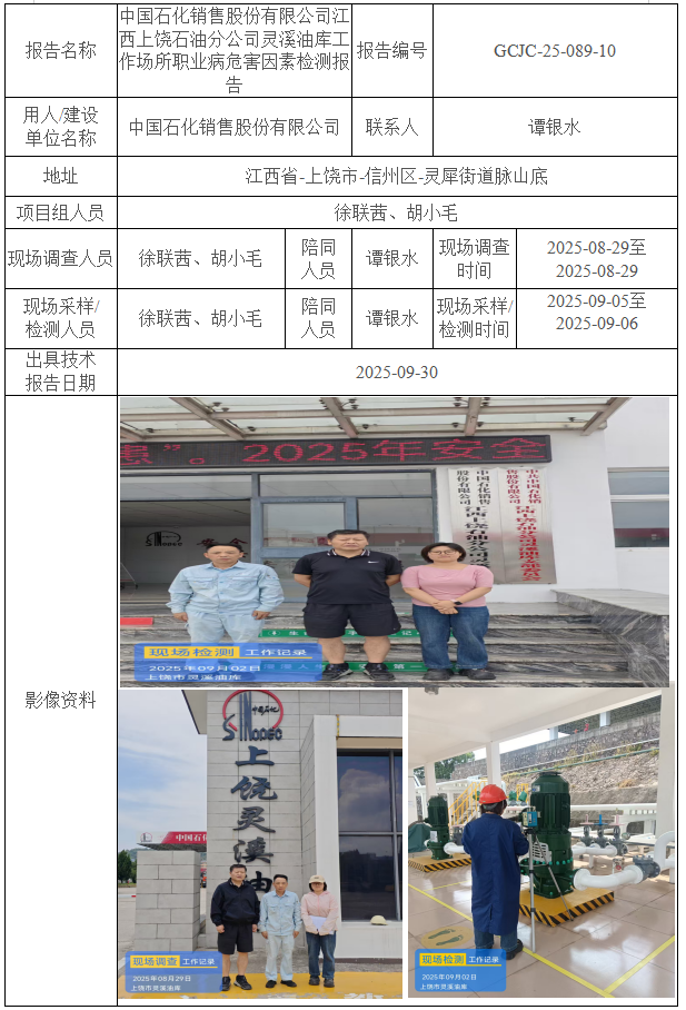 中国石化销售股份有限公司江西上饶石油分公司灵溪油库工作场所职业病危害因素检测报告