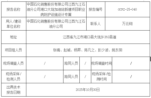 下一篇:中国石化销售股份有限公司江西九江石油分公司中国石化江西九江石油分公司沙阎路综合加能站项目职业病防护设施设计专篇