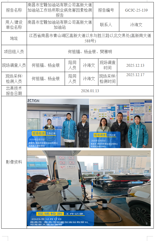 南昌市宏赣加油站有限公司高新大道加油站工作场所职业病危害因素检测报告