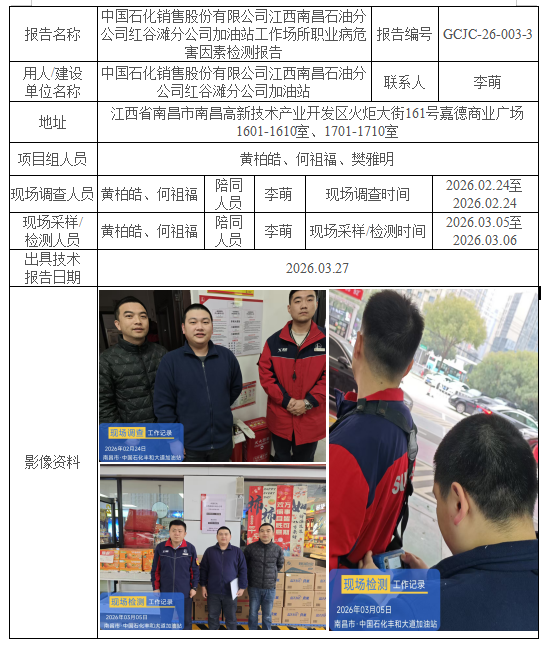 中国石化销售股份有限公司江西南昌石油分公司红谷滩分公司加油站工作场所职业病危害因素检测报告